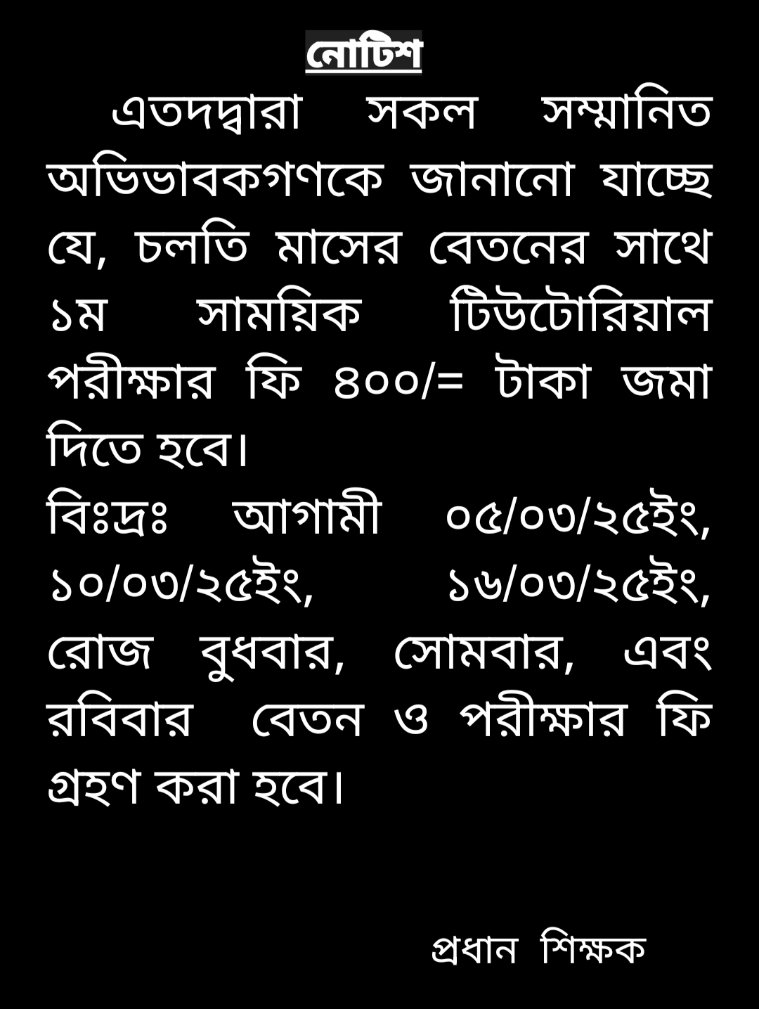 মার্চ মাসের বেতন ও টিউঃ পরীক্ষার ফি